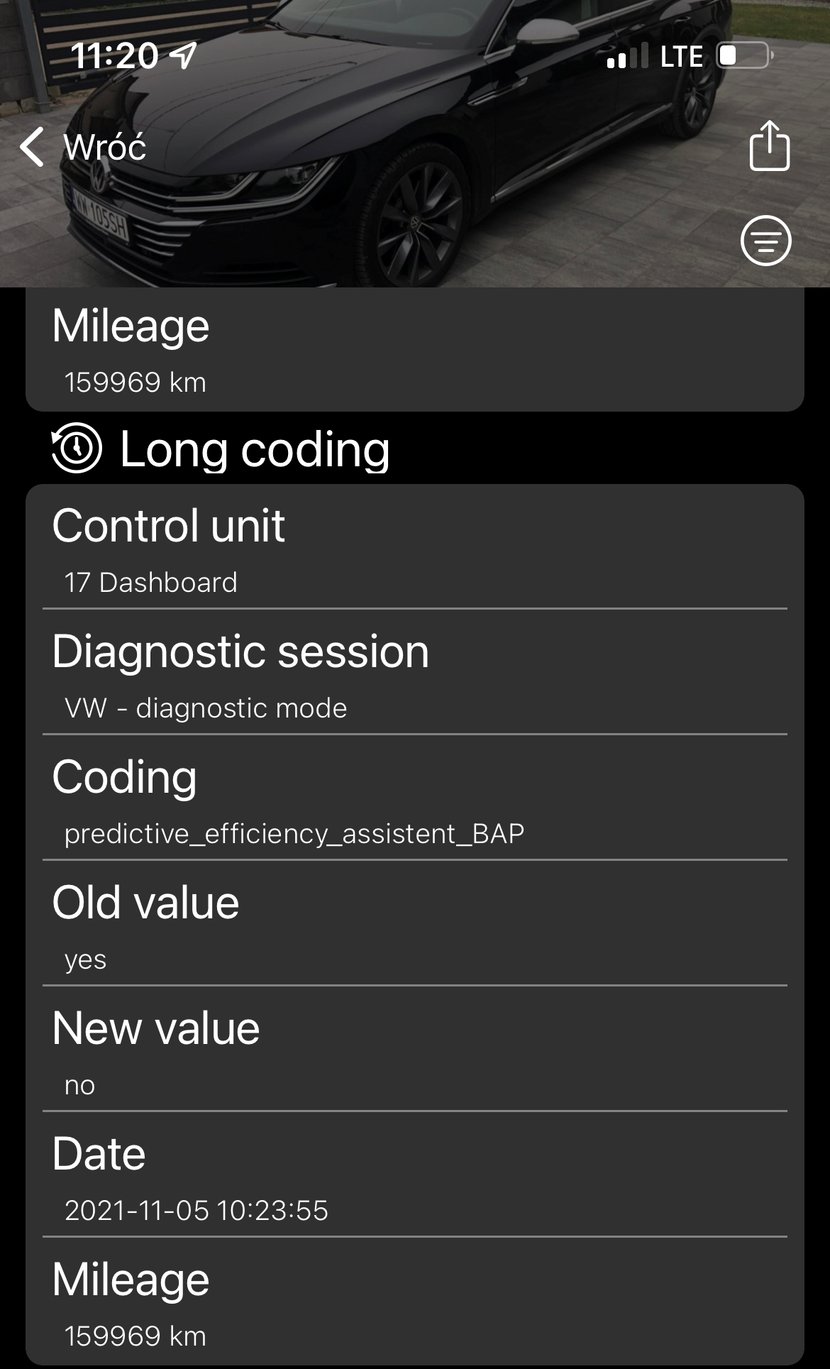 Chyba to drugie bo faktycznie parę modów OBDEleven jest wgranych. Ostatni mod, niestety nieudana próba wgrania, to dodatkowe kolory ambiente i może to jest z tym związane? Jak sprawdzić poprawność kodowania?