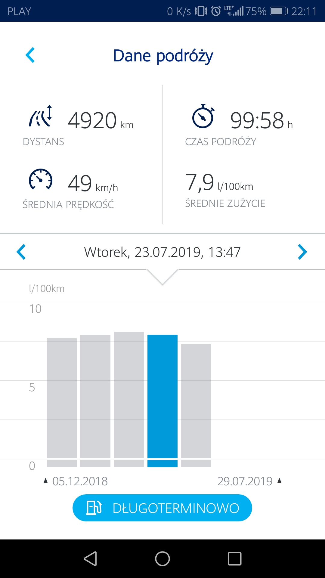 Poniżej masz dane z We Connect z mojego wypadu wakacyjnego przy średniej prędkości ok 100km/h