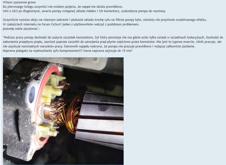 2. Czy ktoś z was spotkał się z tym problemem i zna warsztat, który ma możliwości (i dostęp do części) aby wymienić tylko tę zepsutą pompę, zamiast całego haldexa?