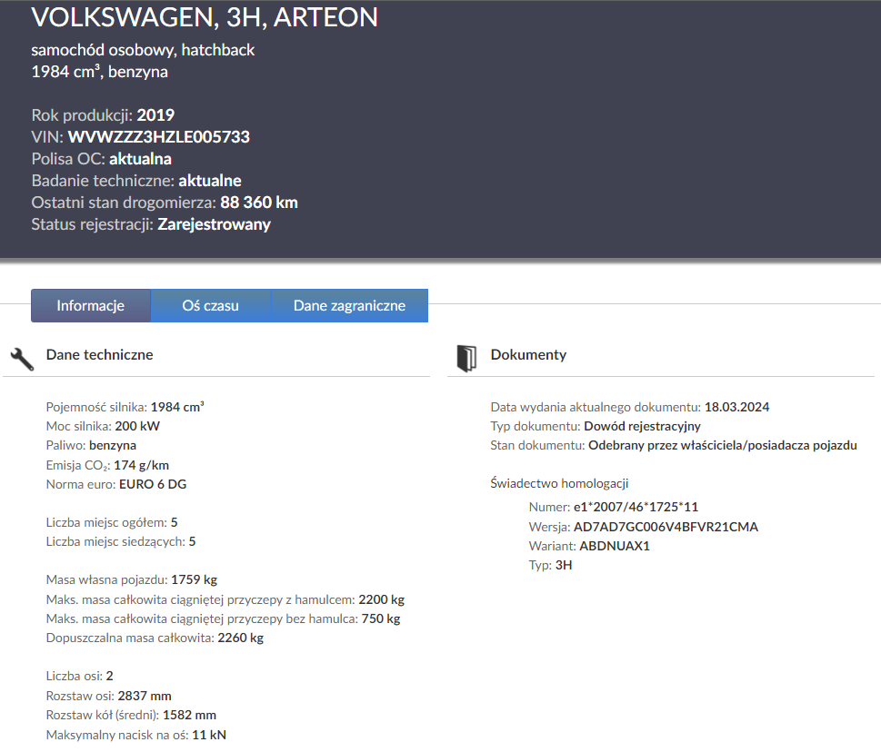 dane z https://historiapojazdu.gov.pl/ poniżej