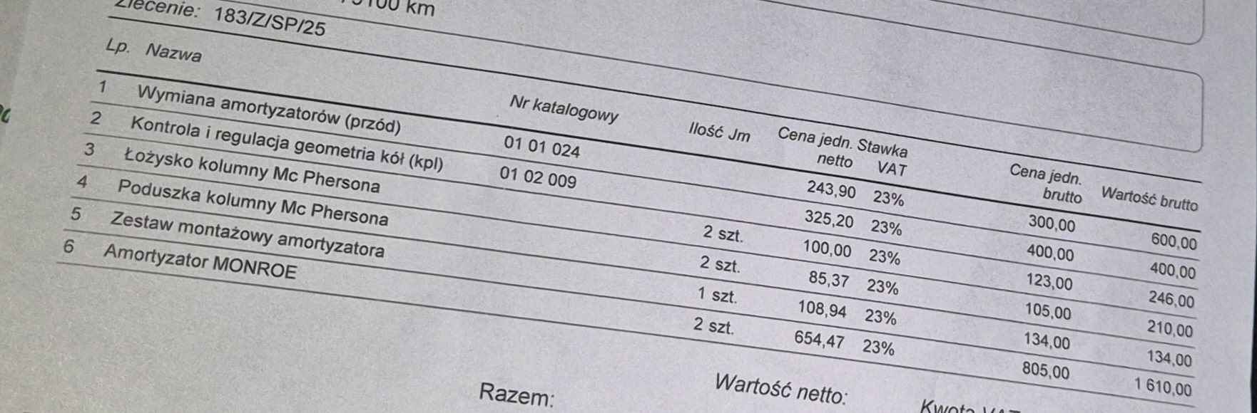 Ori dostarcza Monroe - Monroe C2516S to koszt 550 pln szt (ten sam, ale z logo VW w ASO 1600pln sztuka), wiec jest to wycena spoza ASO i nie jest najtansza. Geometria 400 pln - za Huntera 3D płaciłem 250 pln ...