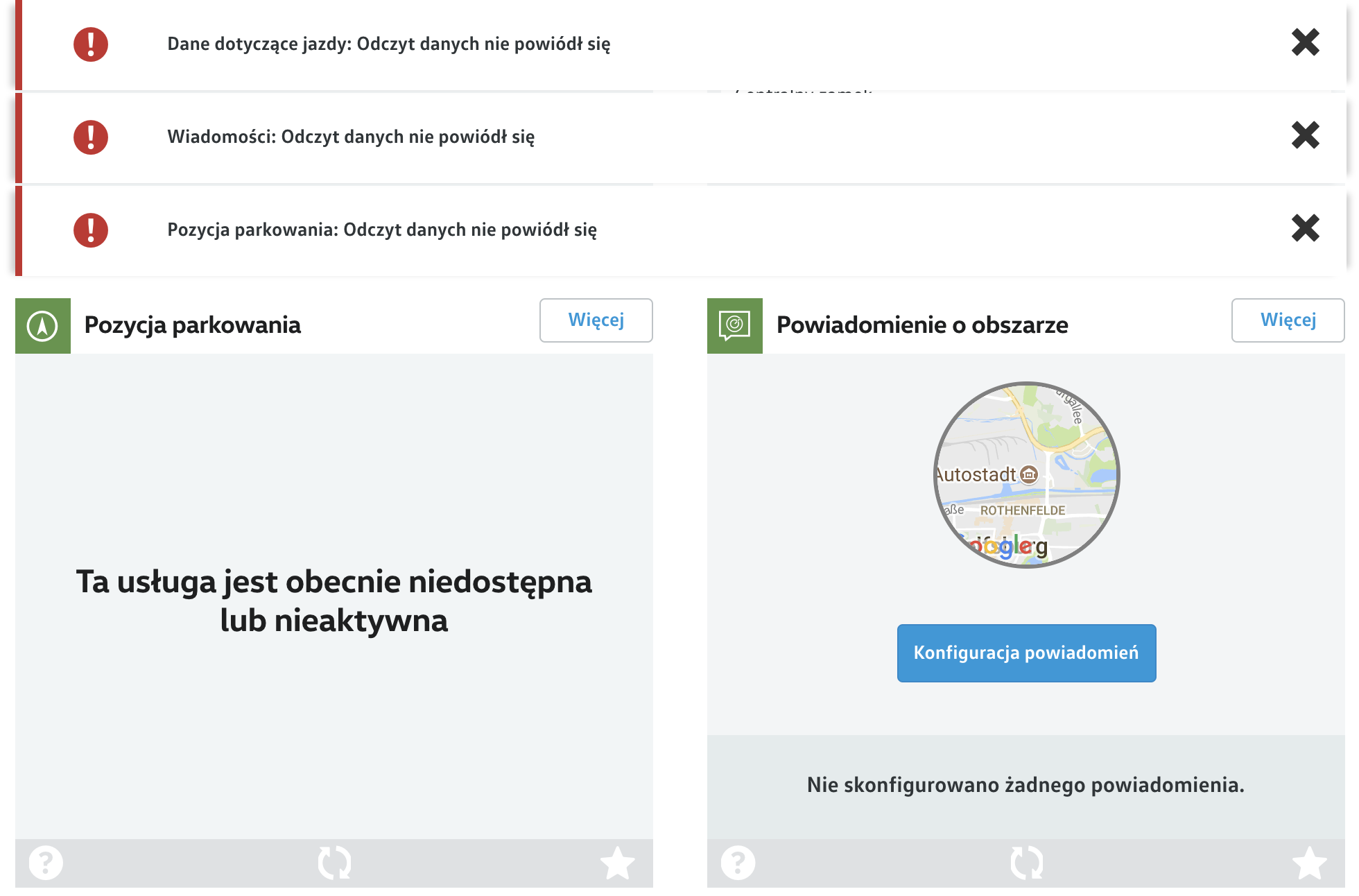 U mnie Car-Net działa zawsze poprawnie. Jedynie czasem jest problem z aktualizacją danych ze względu na parkowanie w garażu podziemnym na poziomie -2, ale zazwyczaj pomimo tego samochód jest w stanie połączyć się z internetem i wysłać aktualizację danych. Jedynie kilka razy było konieczne ponowne zalogowanie do aplikacji mobilnej.