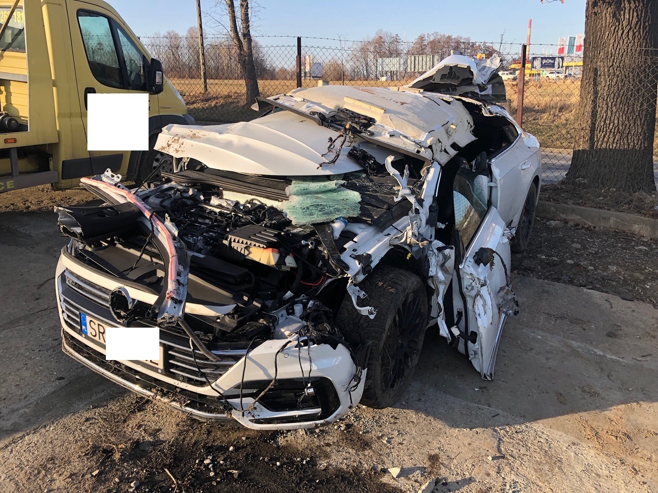 Wygląda tak jakby wjechał pod TIR-a.