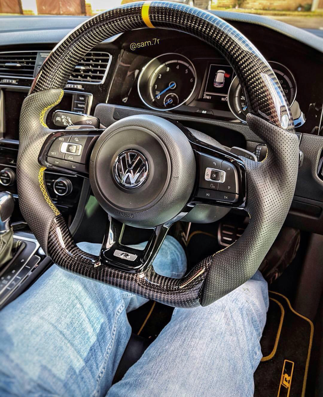Masz rację kierownica R-Line jest bardzo ładna i dlatego się waham. Osobiście bardzo lubię częściową Alcantarę na kierze, tak jak to Mercedes np. w CLA 45 AMG ma zrobione, tam jest cudowne to połączenie z perforowaną skórą. Może faktycznie ją całą obszyję jak mi się znudzi, zobaczymy co tam wymyślę