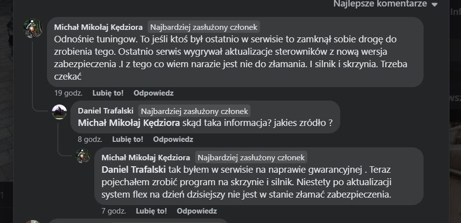 Na stronach facebookowych arteona pojawiła się informacja że serwis wgrywając aktualizację sterowników wgrywa je z nowymi wersjami zabezpieczeń co blokuje możliwość modyfikacji silnika i skrzyni u tunera.