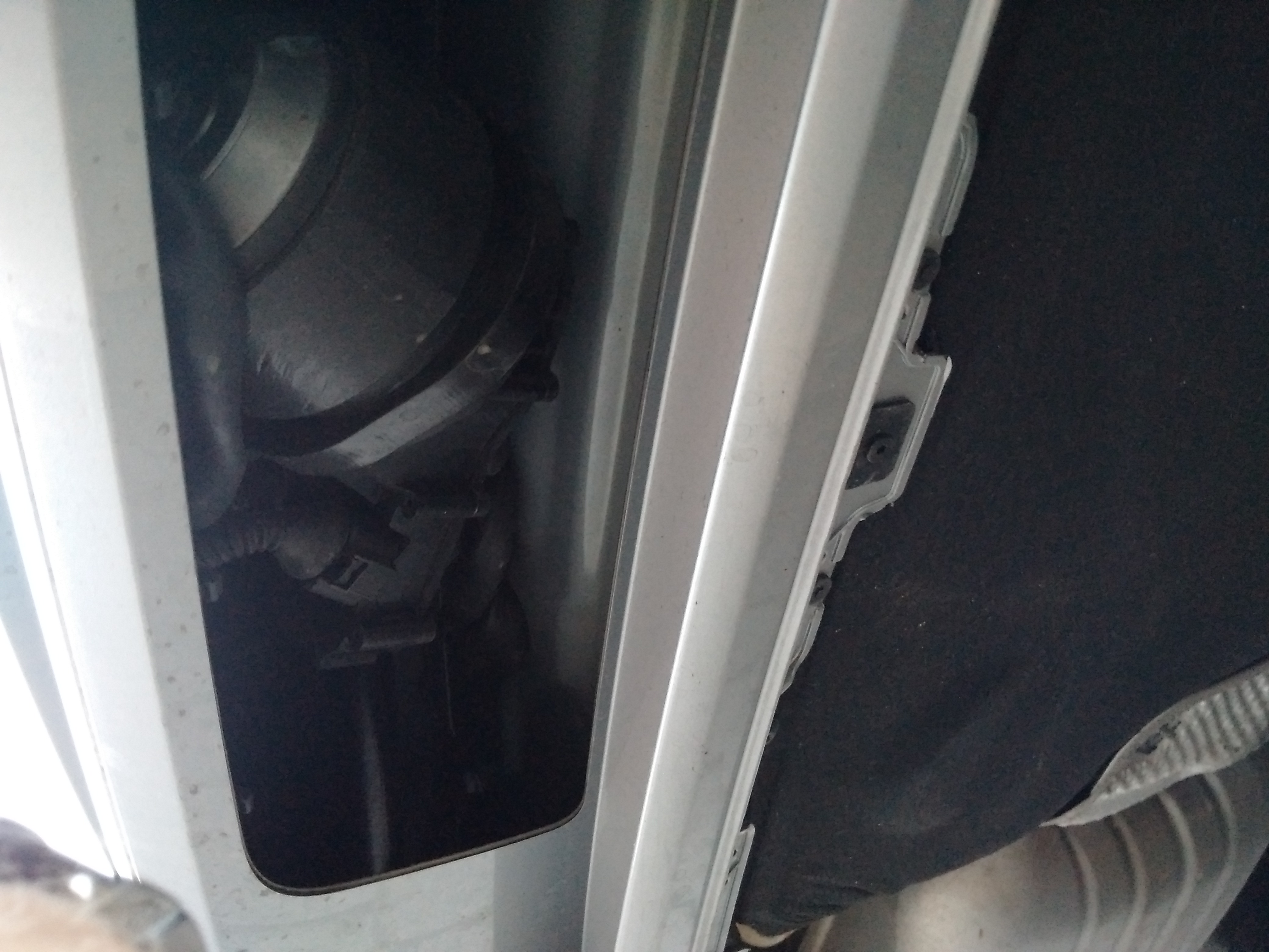 Mam z fabryki,dziura musi byc, bo jakby miał się wysuwac :D :D ale tylko pod spodem,takze nic nie widac.