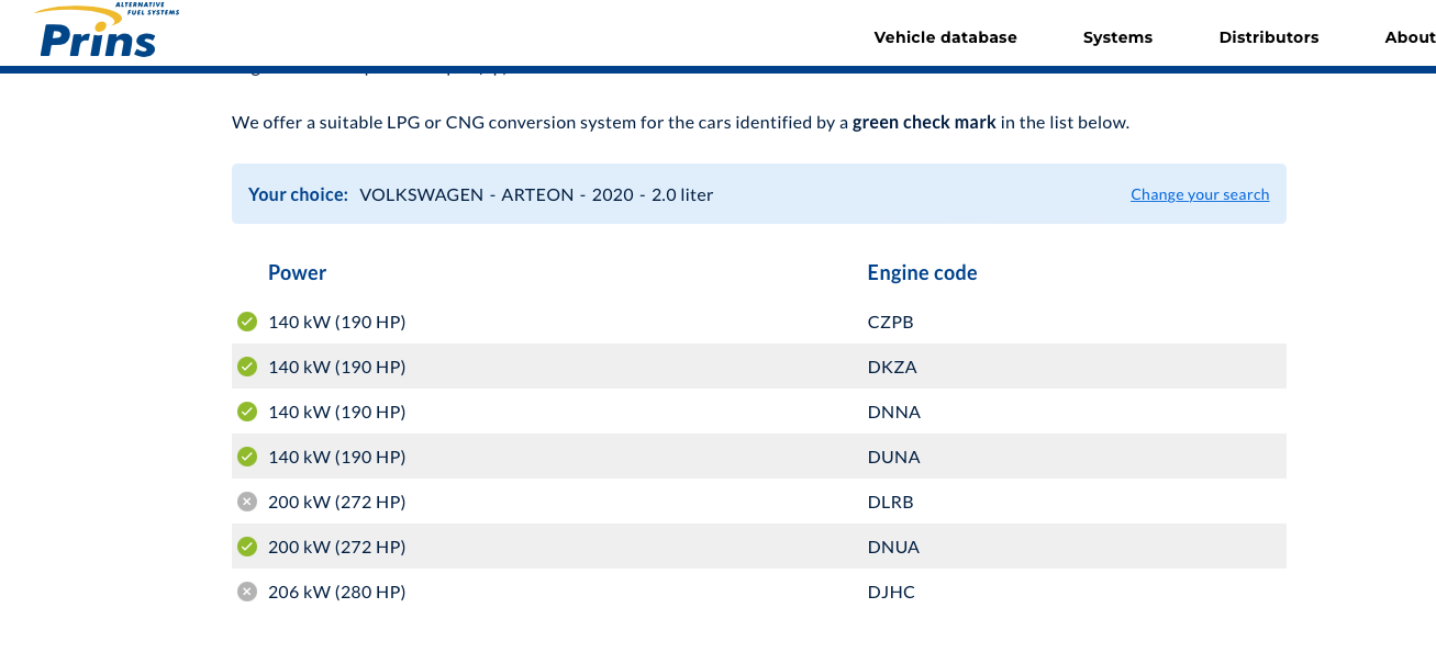 Jak widać na załączonym obrazku PRINS autogaz oferuje instalacje dedykowane do TSI - zaznaczone kody silnika i moce.