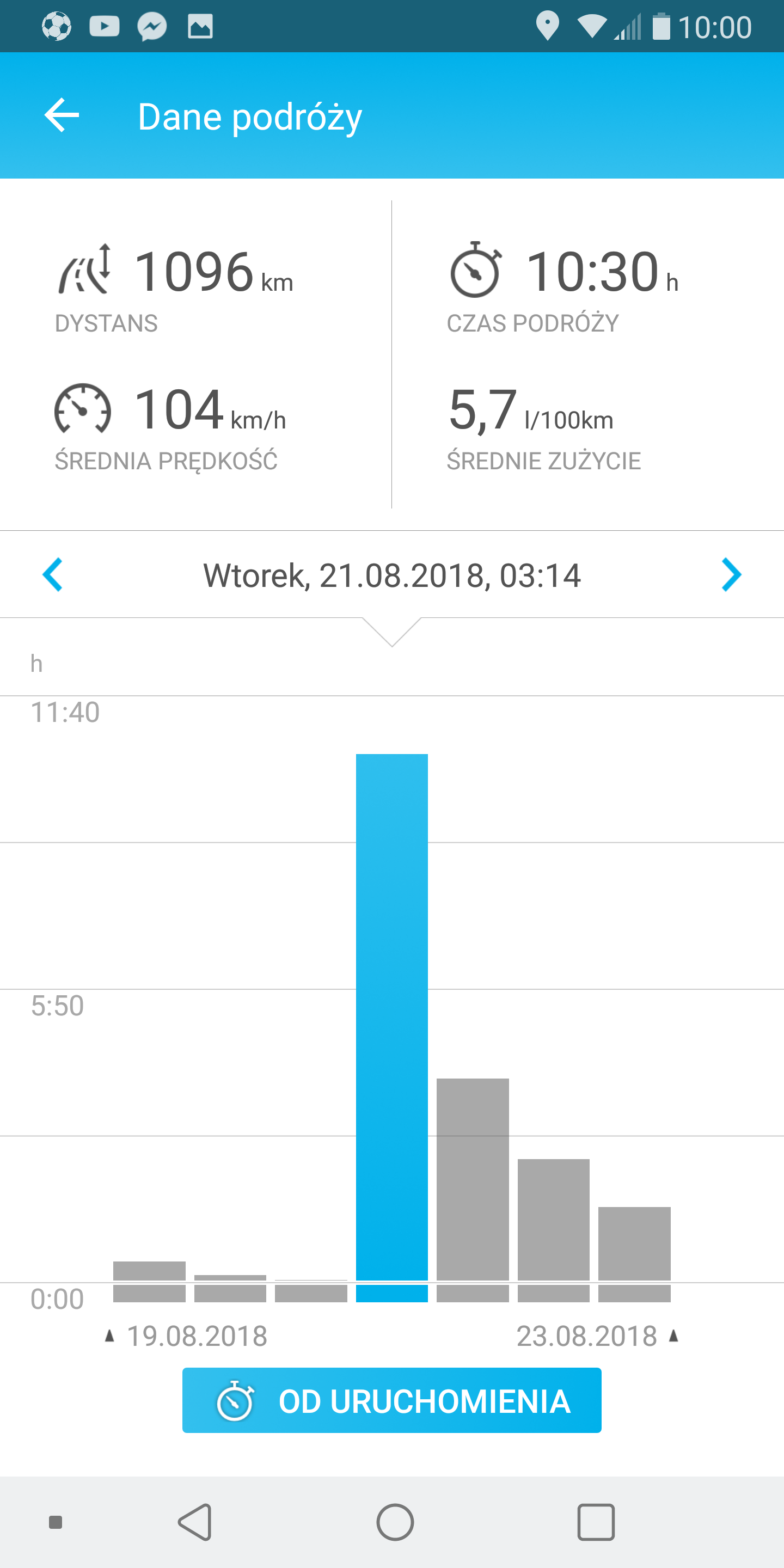 Na trasie 1400 km spalanie 6.0 l, średnia 90 km/h.