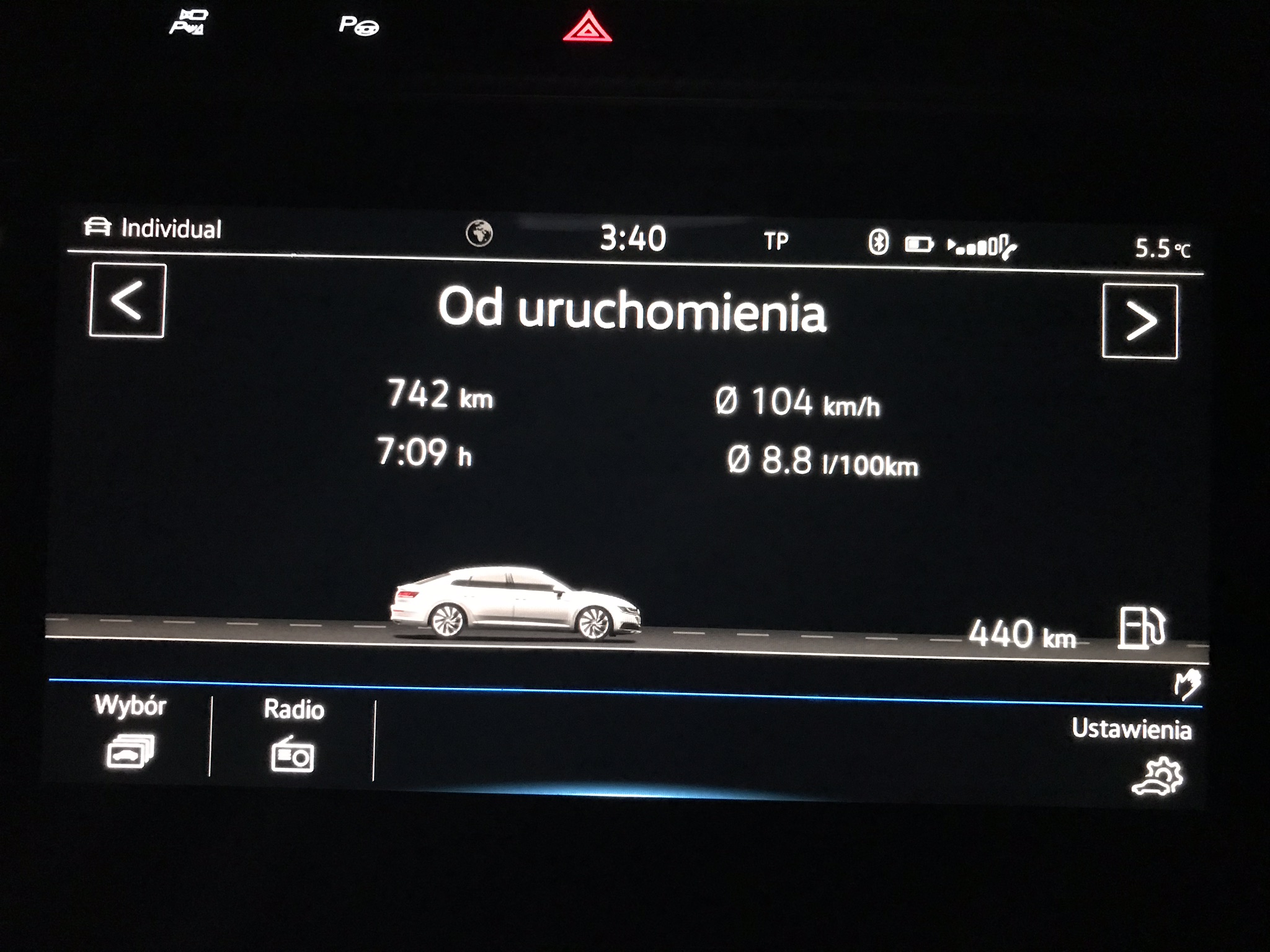 W drodze powrotnej troszkę szybciej i stąd 7,9 l z całej trasy, ale wcześniej było 7,4 l
